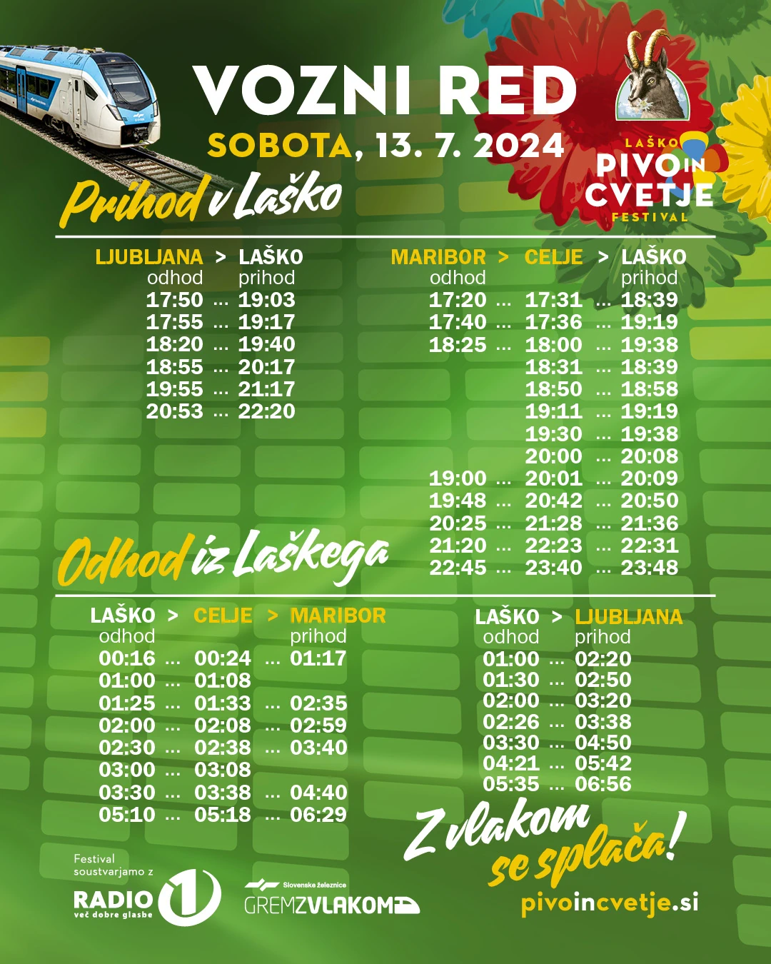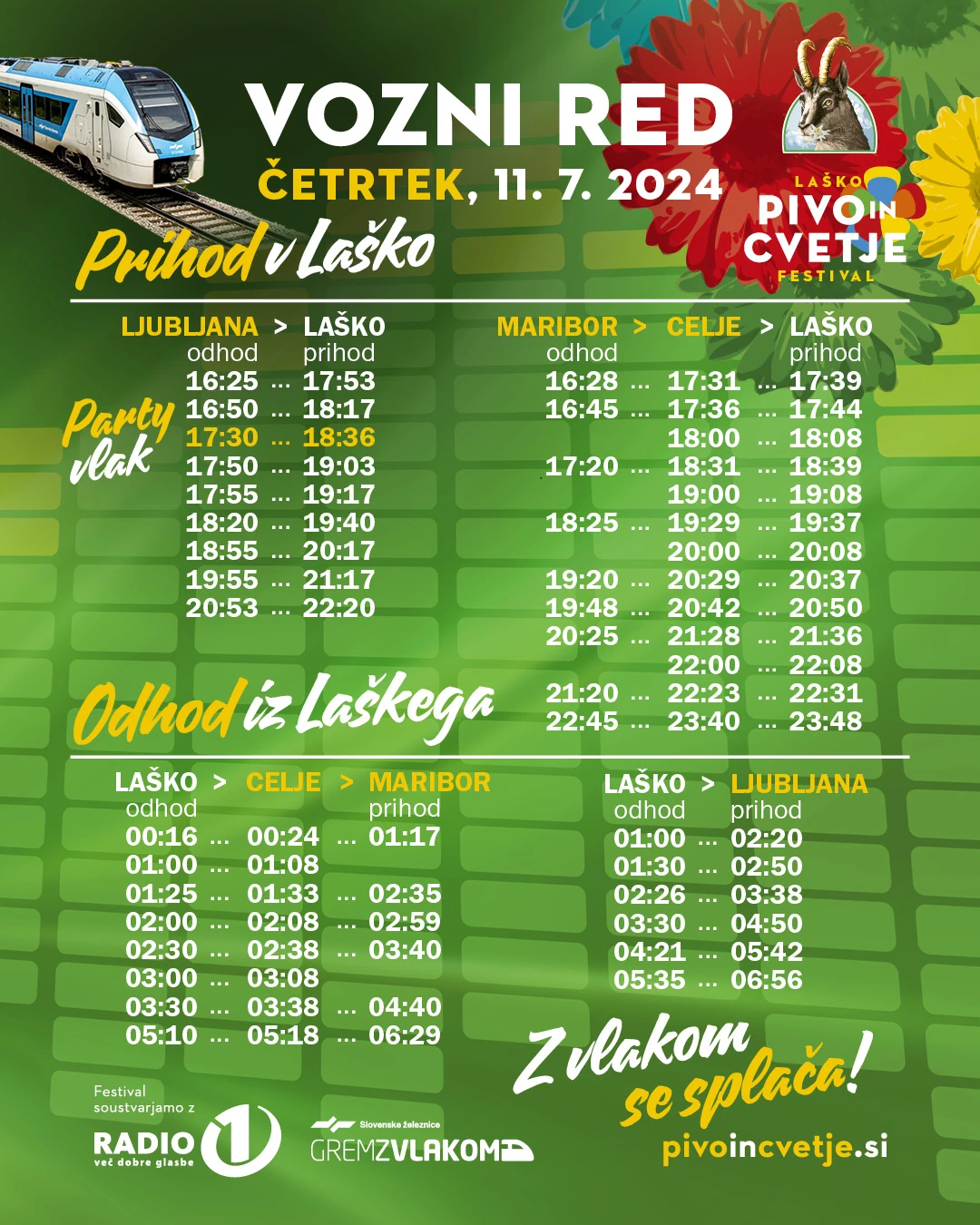 Every one-day or festival ticket includes a free train ride to Laško.*
