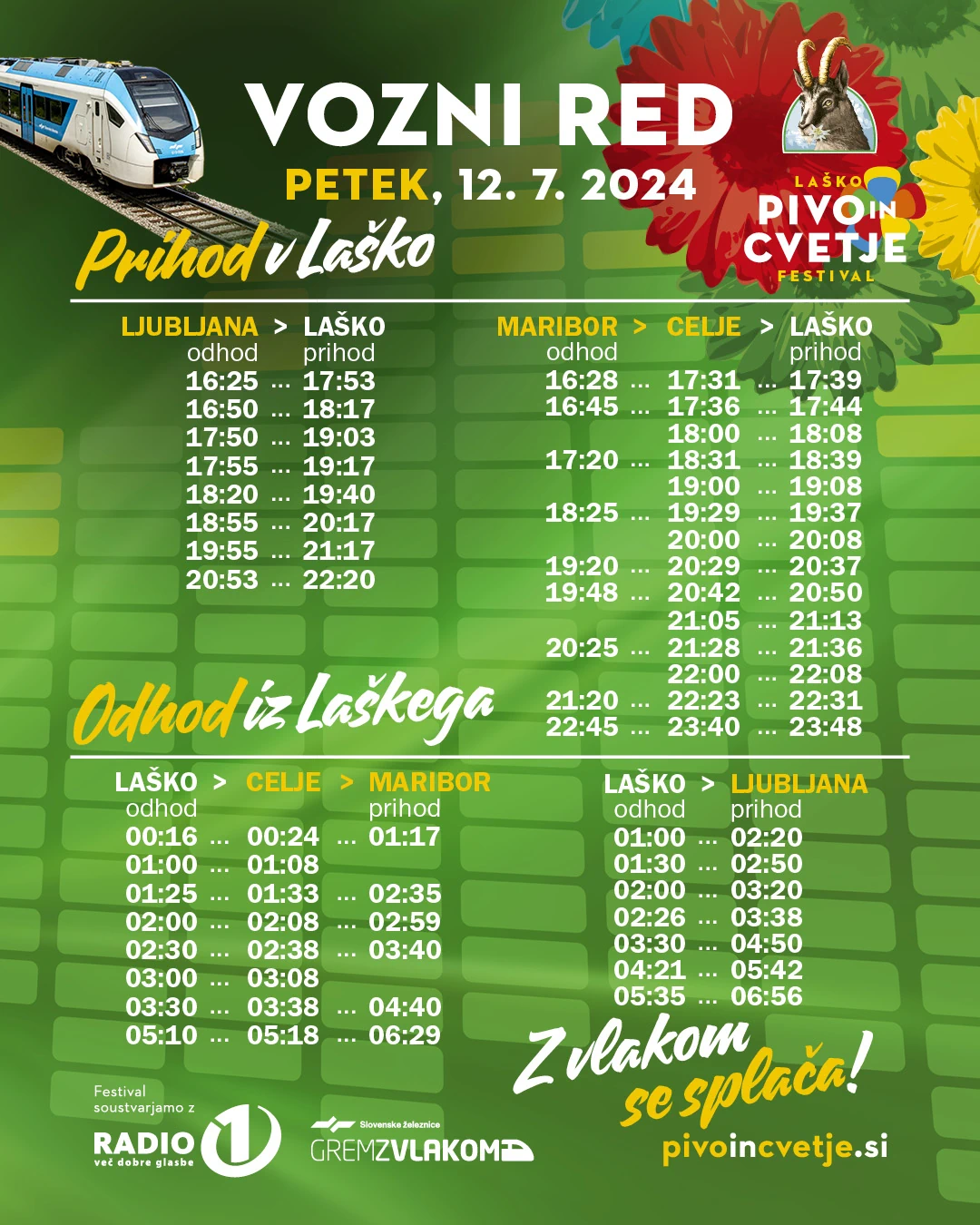 Slovenian Railways is our reliable partner year after year. And this year, you can get to the biggest party of the summer without any additional costs, as every ticket for the festival (both for one day and several days) also covers transportation by train from all over Slovenia. Arrive safely, comfortably, and without any costs.